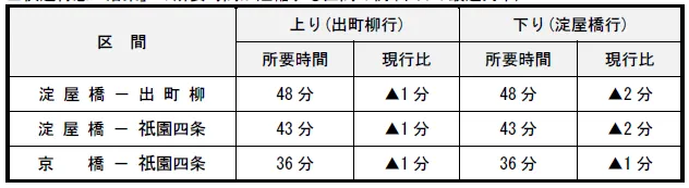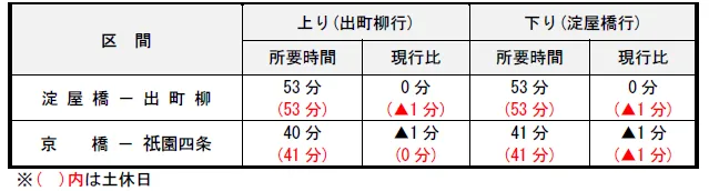 (2)平日および土休日の昼間時における特急の所要時間(京橋ー祇園四条間)を最大1分短縮します。