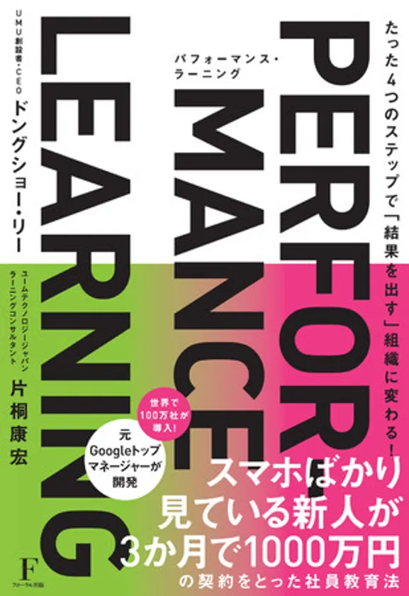 日本においては、1万社以上がこのパフォーマンス・ラーニングを実現できるUMUを導入し、人材育成のDX化を進めています。共著者である片桐 康宏は、日本でパフォーマンス・ラーニングを先進的に取り入れ、社員教育におけるイノベーションを実現している製薬、保険、メーカー、小売り、研修コンサルタント会社合計12社(13事業部)にインタビューを行いました。日本経済低迷の要因になっている企業の生産性停滞を改善するために、抜本的に組織の学びを変え、「成果を出し、生産性を上げる学び」に必要な考え方と具体的なアプローチ方法について実例を紹介しながら詳細に解説しています。「パフォーマンス・ラーニング」を学べる内容を扱ったものとして、日本初の書籍となります。人材育成のDX化、事業成長を考える全ての経営者や経営企画室、人事、営業、事業部のマネージャーを読者対象としています。