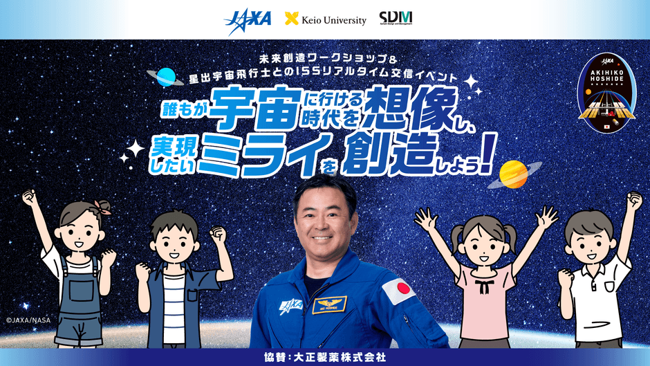 大正製薬株式会社[本社:東京都豊島区 社長:上原 茂](以下、当社)は、宇宙開発をめざして頑張る人々を応援するリポD SPACE PROJECTの活動の一環として、国立研究開発法人宇宙航空研究開発機構(以下JAXA)と慶應義塾大学大学院システムデザイン・マネジメント研究科が共催する、未来創造ワークショップに参加する小学生と、現在国際宇宙ステーション(以下ISS)に滞在しているJAXA星出彰彦宇宙飛行士(以下、星出宇宙飛行士)とのリアルタイム交信イベントに協賛いたします。
