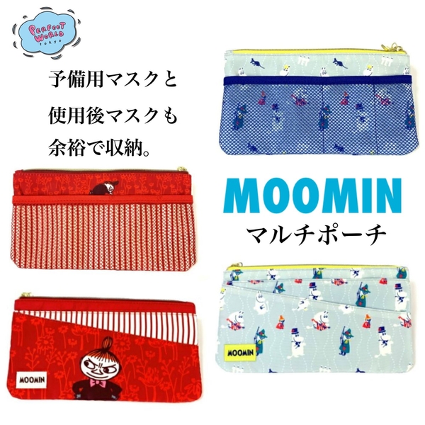 マスクケースの進化版としてご紹介したいムーミンのマルチポーチ。今回は淡い色合いが優しいムーミンとドヤ顔のミィが可愛いレッドカラーの選べる2種類です。「バッグの中の小物をひとつにまとめたい!」という方にも必見のアイテムですよ♪