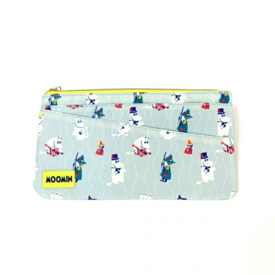 予備用マスクと使用後マスクも分けて余裕で収納、ムーミンのマルチポーチ。透明ポーチ付きのドヤ顔ミィと淡いムーミンの選べる2種類で。