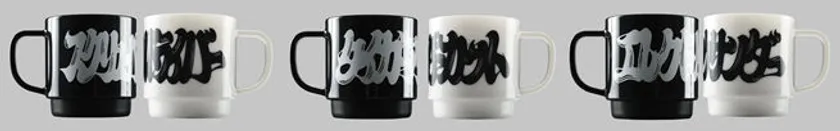 キャラクターの必殺技名にフォーカスし、漢字・仮名の必殺技名を力強く筆文字で表現したグラフィックを日本製のリサイクルPET100%の耐熱マグにプリントしました。