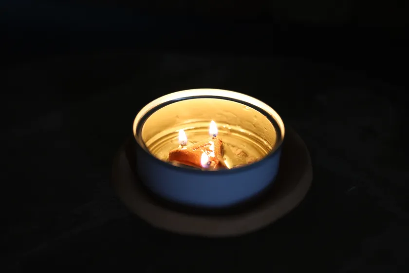 ツナ缶オイルで着火したキャンドルベース