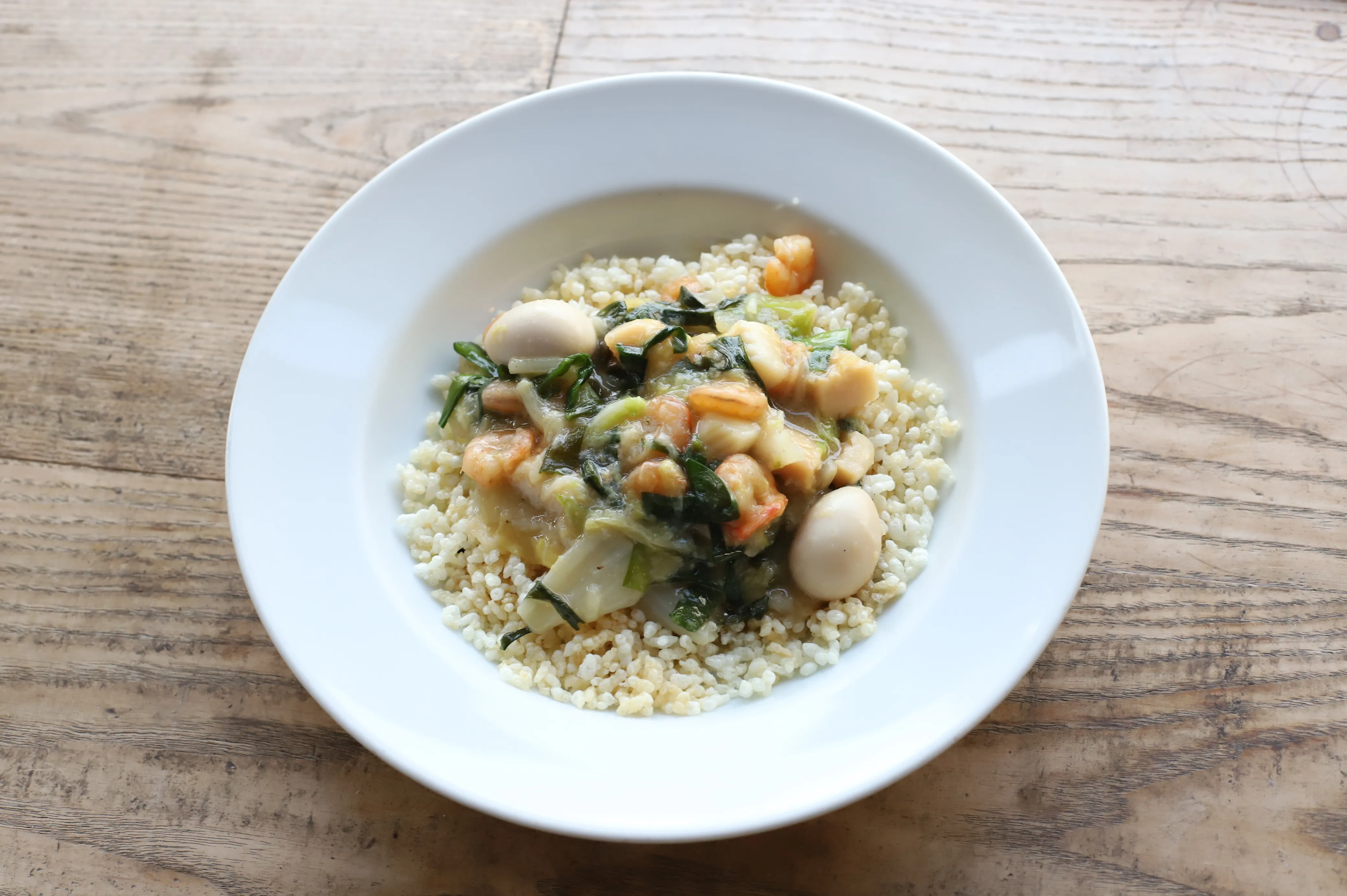 白菜(食べやすい大きさに切る) 1/8カット シーフードミックス 200g程度