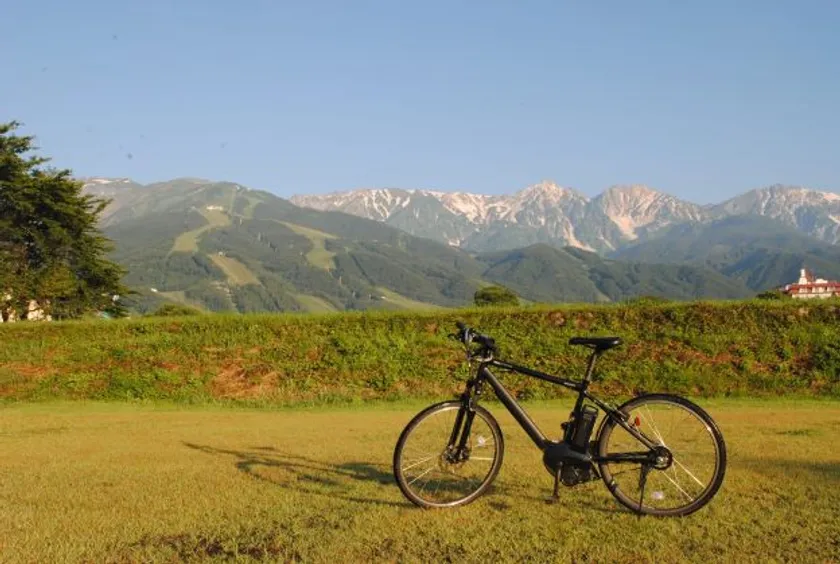 レンタサイクルは白馬駅から徒歩3分程度の施設で、電動自転車(クロスバイクタイプとシティサイクルタイプの2種類)を2日間セットでレンタルできます。