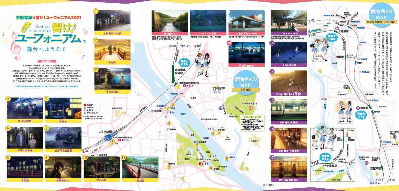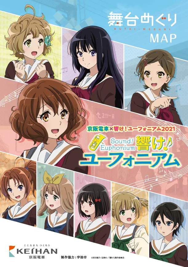 作中に登場した宇治市内などのシーンをまとめた「舞台めぐりMAP」を、京阪電車の主要駅や宇治市内の各所で配布します。