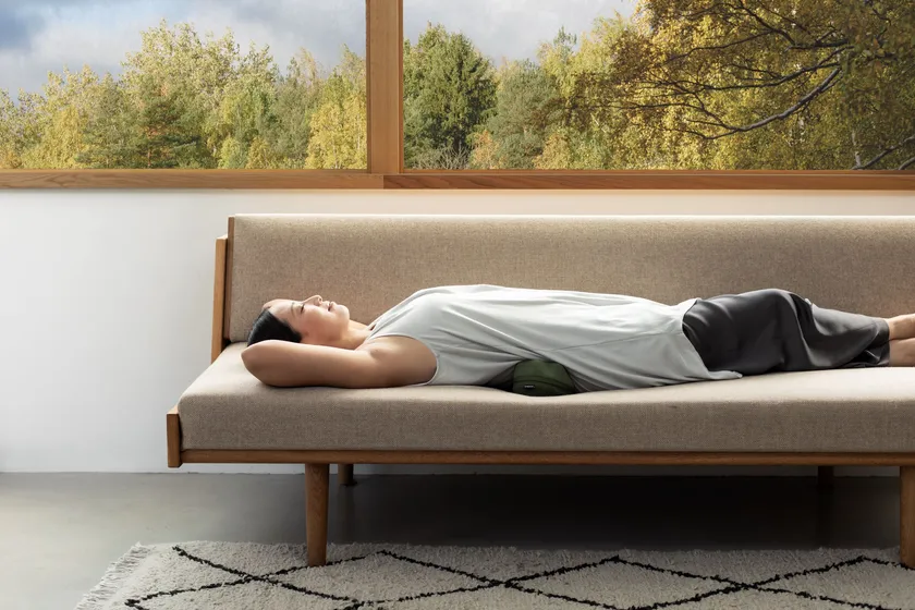 コリは、疲れを感じたらすぐほぐすことが深刻化させないコツです。KOSHI-MOMY(コシモミー)は、おうちでのリラックスタイムやテレワーク中にも手軽にコリほぐしができます。着席時は椅子の背もたれと身体の間に挟んで、腰や背中の筋肉をほぐしながら作業し、いつでもしなやかな身体をキープ。