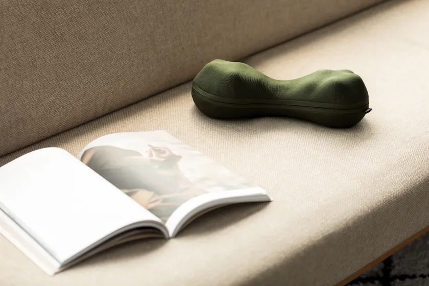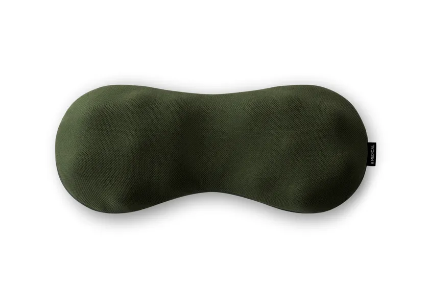 『KOSHI-MOMY(コシモミー)』は、しなり構造と14個の指圧突起の組み合わせにより、寝るだけで腰をぐいっと揉みほぐすコリほぐしクッションです。