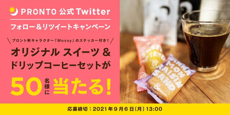 9月6日(月)までの期間中、プロント公式Twitterアカウント(@PRONTO_pr)をフォローし対象のツイートをリツイートすると、以下の賞品が50名様に当たります。