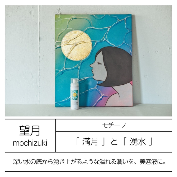 パッケージデザインのモチーフに日本画作品を採用しました。日本画は自然の発色をもつ鉱物を砕いた岩絵具という画材を用いて、山や草花などを敬い愛でながら描かれます。
