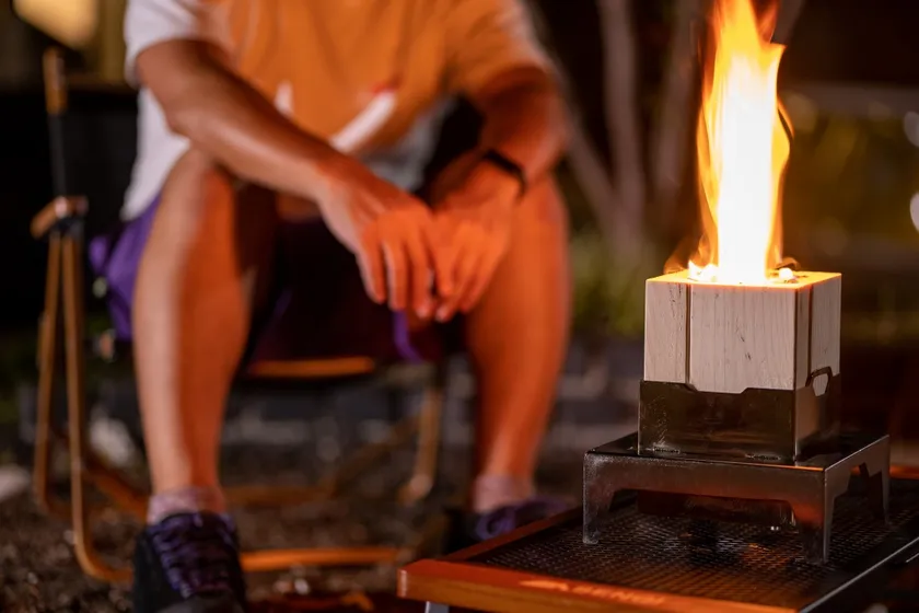 吹き上げる炎を楽しむ『吹火台2×4STOVE』
