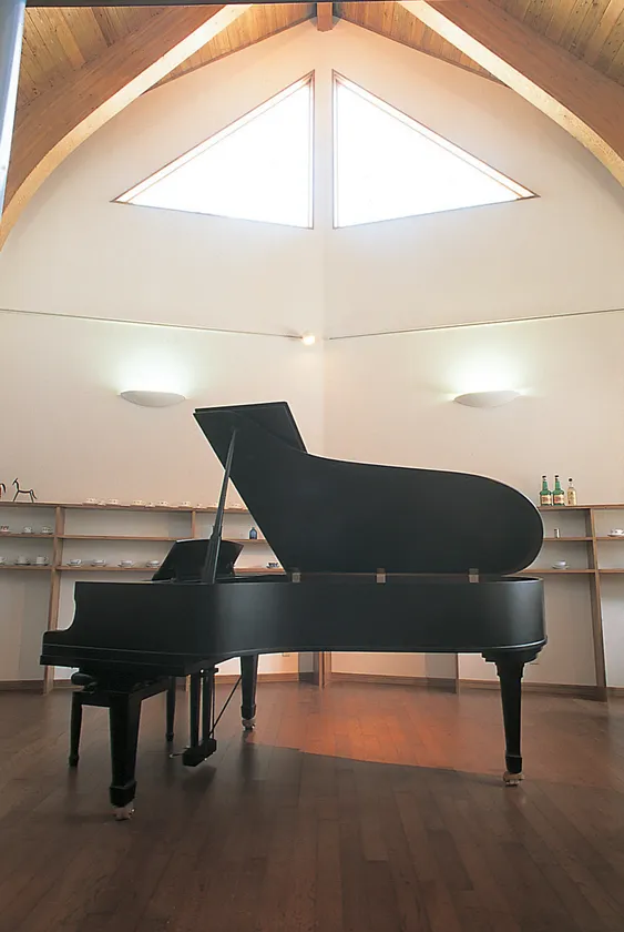 レストランパリンカは当初より音楽イベントの開催を念頭に店舗の設計を行い、楽器や歌声が心地よく響く音響効果を考えた、天井の高い木造建築となっております。フロアのメインスペースには仙台ピアノ工房のマイスター 伊藤 正男 氏の手によって仕上げられた本格的なグランドピアノを据え、「音楽とイタリア料理を」というキャッチコピーのとおり音楽を前面に出して、プロ・アマ問わずご利用いただき、日本のトップレベルの演奏家や海外の演奏家からもこのピアノと空間、そして料理の組合せに高い評価を得てきました。