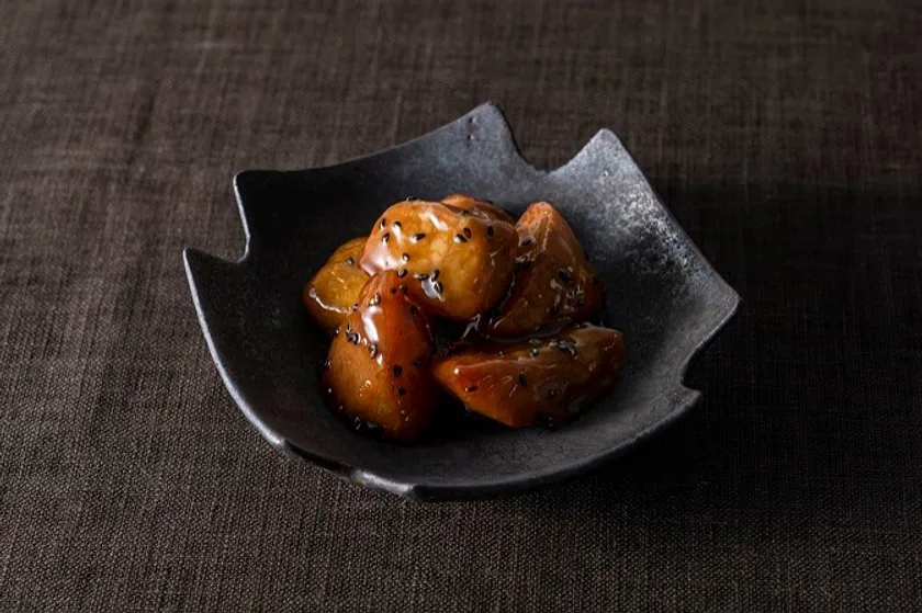 中はほくほく、外はパリッと蜜が“黄金色(こがね色)”に輝く大学芋です。使用している蜜は、芋いつもオリジナルで、甘すぎず、さつまいもとの相性が抜群。とろとろ「追い蜜」で更に格別な美味しさに。早めにお召し上がりいただくと、揚げたて食感を楽しめます。隠し味に使用している群馬県産のお醤油がアクセントに。
