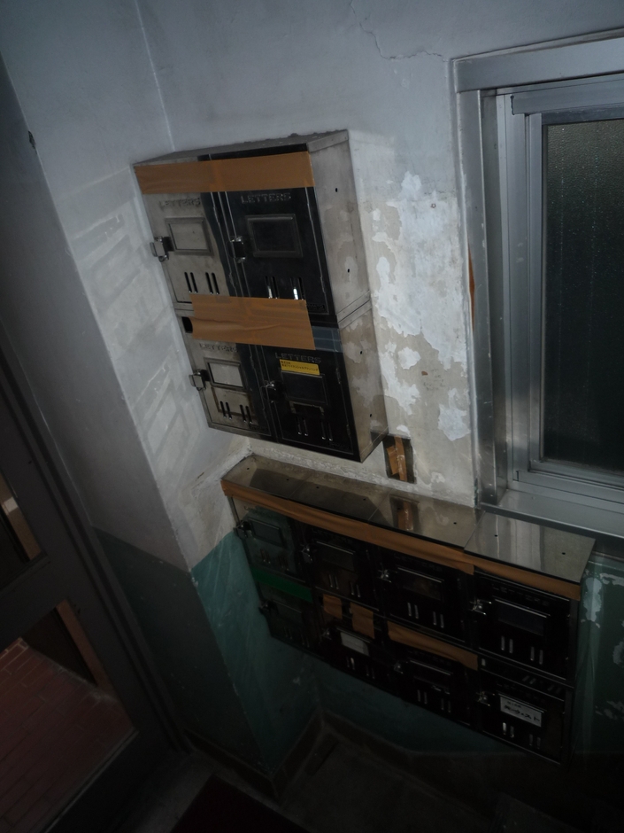 写真は、とても古いビルのエントランスにあったメールボックスです。