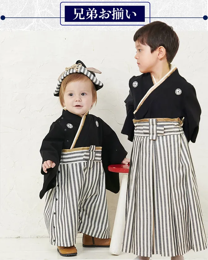 連続発表するのは、ベビー袴として人気を博したデザインのキッズサイズです。「兄弟でお揃いコーデをさせてあげたい」というたくさんのご要望を受け、本格キッズ袴を展開します。