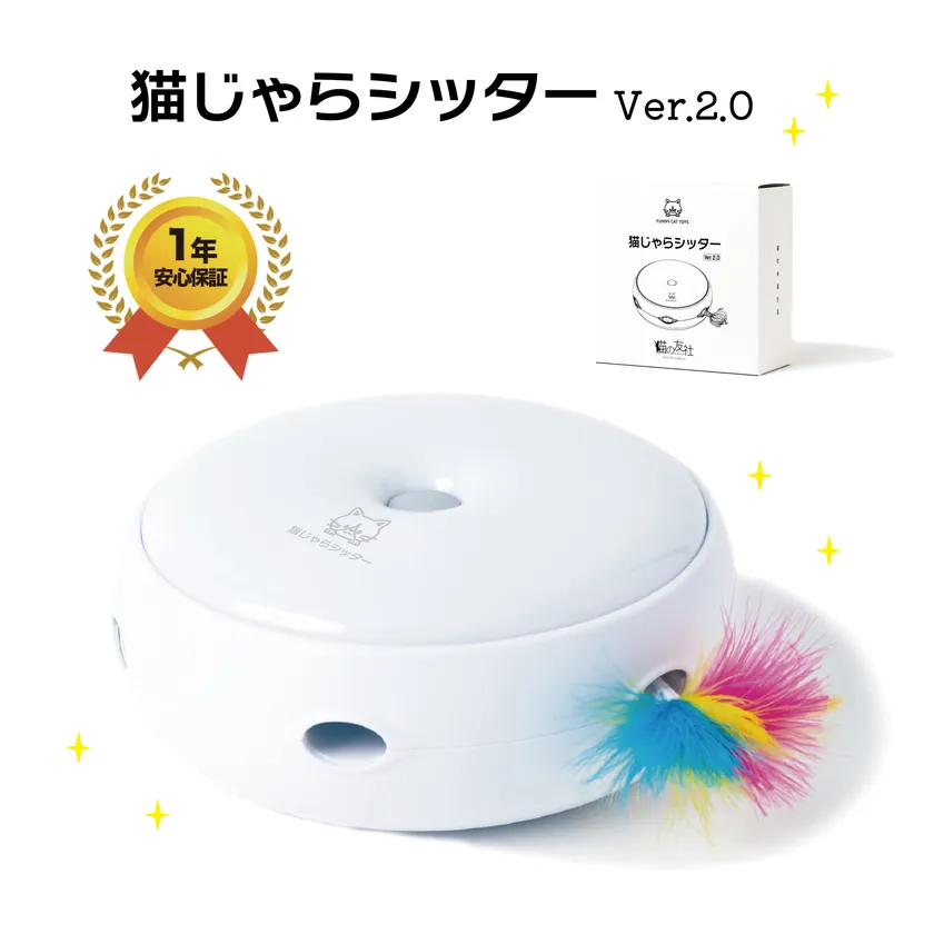 この度、猫の友社は、従来のトリッキーな電動(自動)猫じゃらし機能はそのままに、さらに進化した「猫じゃらシッターVer.2.0」を新たにリリースいたします。ユーザー様からご要望の多かった作動音の静音化とスピードの3段階化の機能を採用することにより、幅広い猫ちゃん達に楽しんでもらえるおもちゃとなりました。