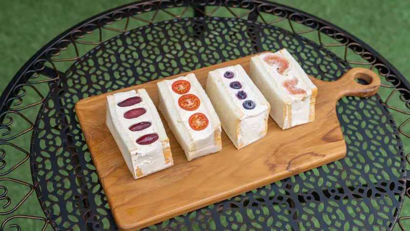 当店の一番人気生食パンであるキワミルクで今が旬の産地直送の果物を贅沢にサンド。さらに、こだわりの黒糖入り生クリームをたっぷり使って包み込みました。果物の甘酸っぱさとクリームの濃厚な味わいがマッチするオープンから連日大人気のフルーツケイクを催事で販売します。