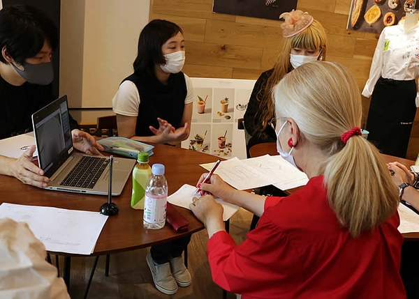 Keiko氏がアドバイザーとなりシニア世代のお悩みや服を選ぶ際のポイントなどを伝え、専門学生たちが自分たちの感性にKeiko氏のアドバイスを加味しデザインを制作。有限会社トリニティが生産を行いYOUKA(ヨウカ)から販売します。現在は3者で企画会議を行いデザイン制作を進行中です。
