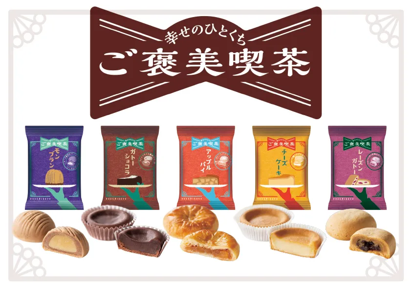 “ほっと一息、小さな幸せ”本格的な洋菓子店の味わいを手軽に楽しめるスイーツの新ブランド「ご褒美喫茶」(モンブラン・ガトーショコラ・アップルパイ・チーズケーキ・レーズンガトー)~2021年9月1日(水)新発売~