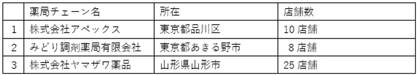 これら様々なタイプの薬局にも「在庫適正化サービス」の効果について検証することとし、以下の保険薬局様のご協力をいただける運びとなりました。それぞれの保険薬局様でパイロット店舗を選抜いただき、効果検証にご参加いただきます。