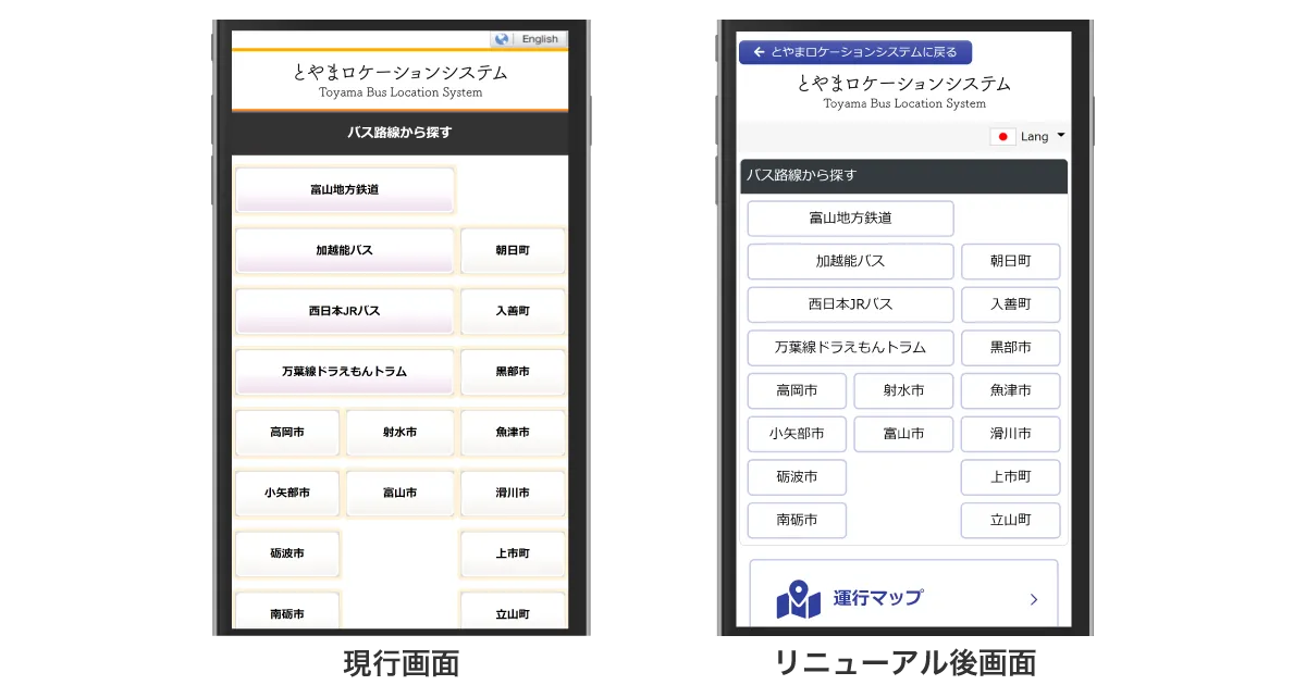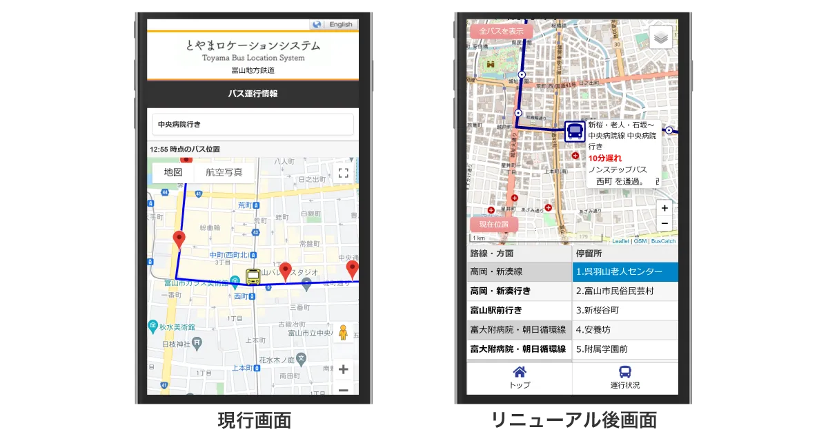 「とやまロケーションシステム」にバスロケーションシステムリニューアル画面の提供を開始