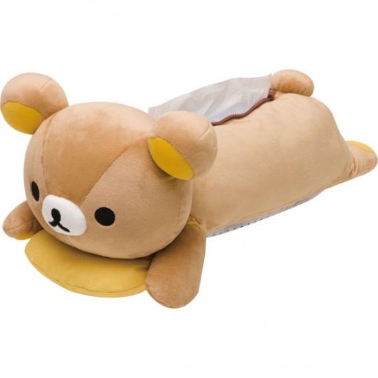 最初からかわいさ全開のグッズ、ぬいぐるみティッシュボックスケースです。ゆるキャラリラックマが、ねそべっているぬいぐるみは、そのままでも十分キュートです。クッション部分は取り外せて、クリーナーになっている優れもの。テレビやパソコンの画面をお掃除できちゃうんです。