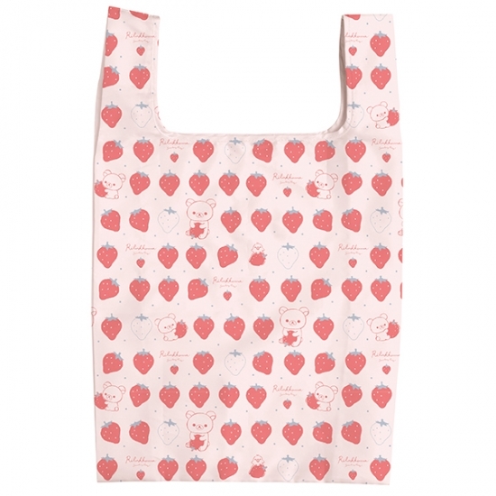 リラックマには珍しい、こんなスイートなイチゴ柄のエコバッグも登場です。バッグの中に忍ばせておけば、いざという時に便利ですよね。