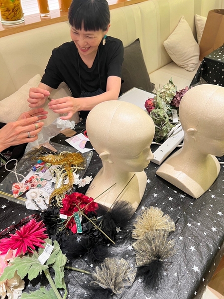お互いに完成したヘッドドレスをつけ合ってみたり、ウィッグと合わせて被ることでまた新たな感性が生まれます。