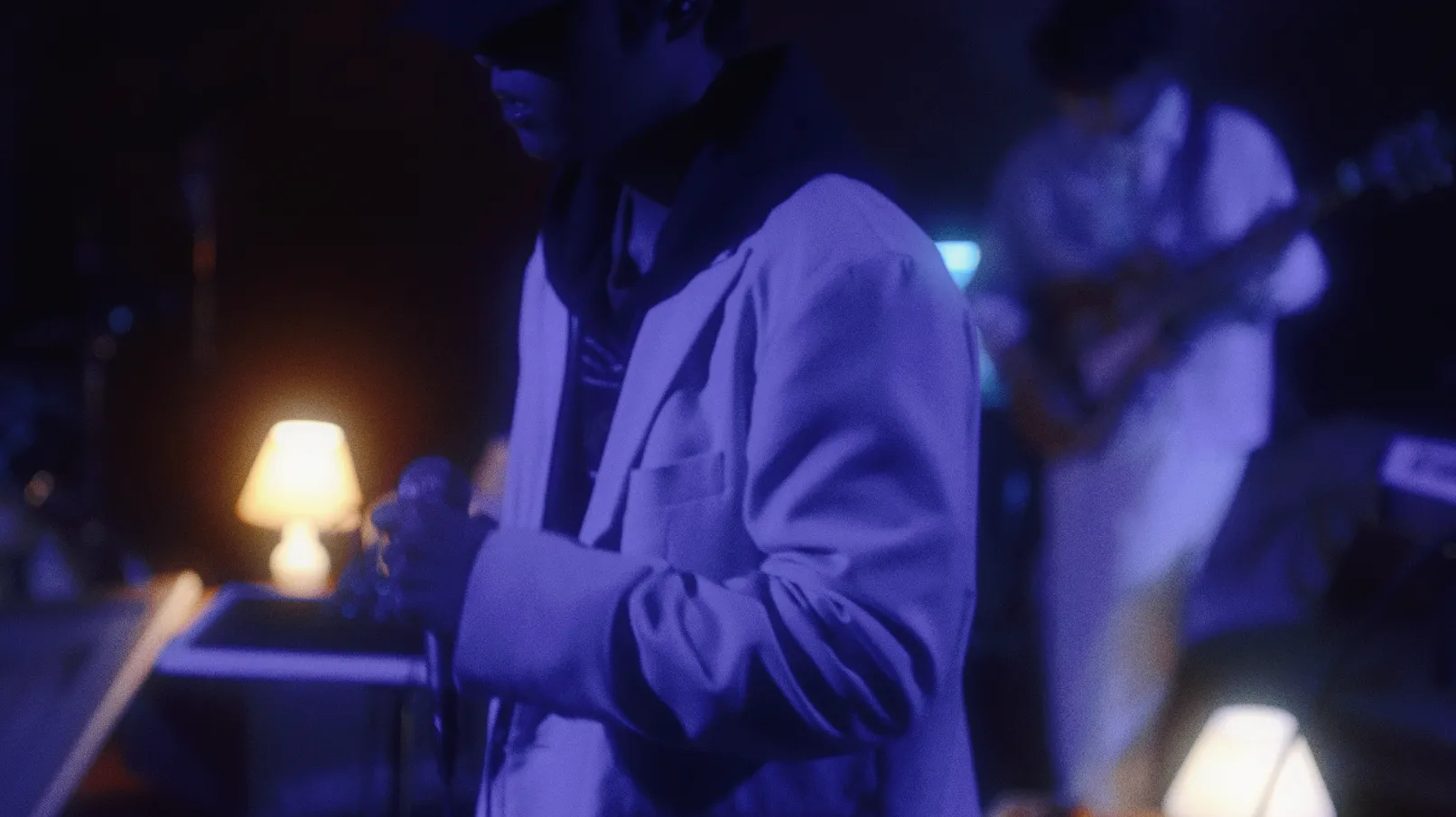 ライブの一曲目をイメージして作られた楽曲に合わせて、ライブが始まる前の暗がりの中で、演者とオーディエンスともに会場内の気持ちが高ぶっていく様子が、妖しく輝くブラックライトで表現されている。