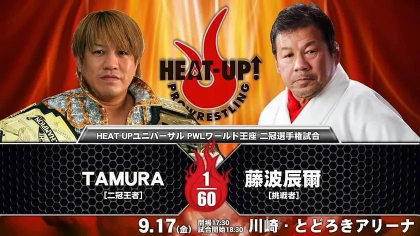 注目カードとしては、TAMURAの持つHEAT-UPユニバーサル、PWLワールドの2冠ベルトにデビュー50周年を迎えた藤波辰爾が挑戦します。