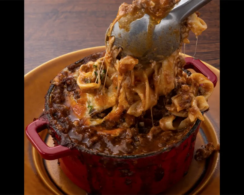 ボリューム満点!ぐつぐつ溶岩のようなミートパスタ