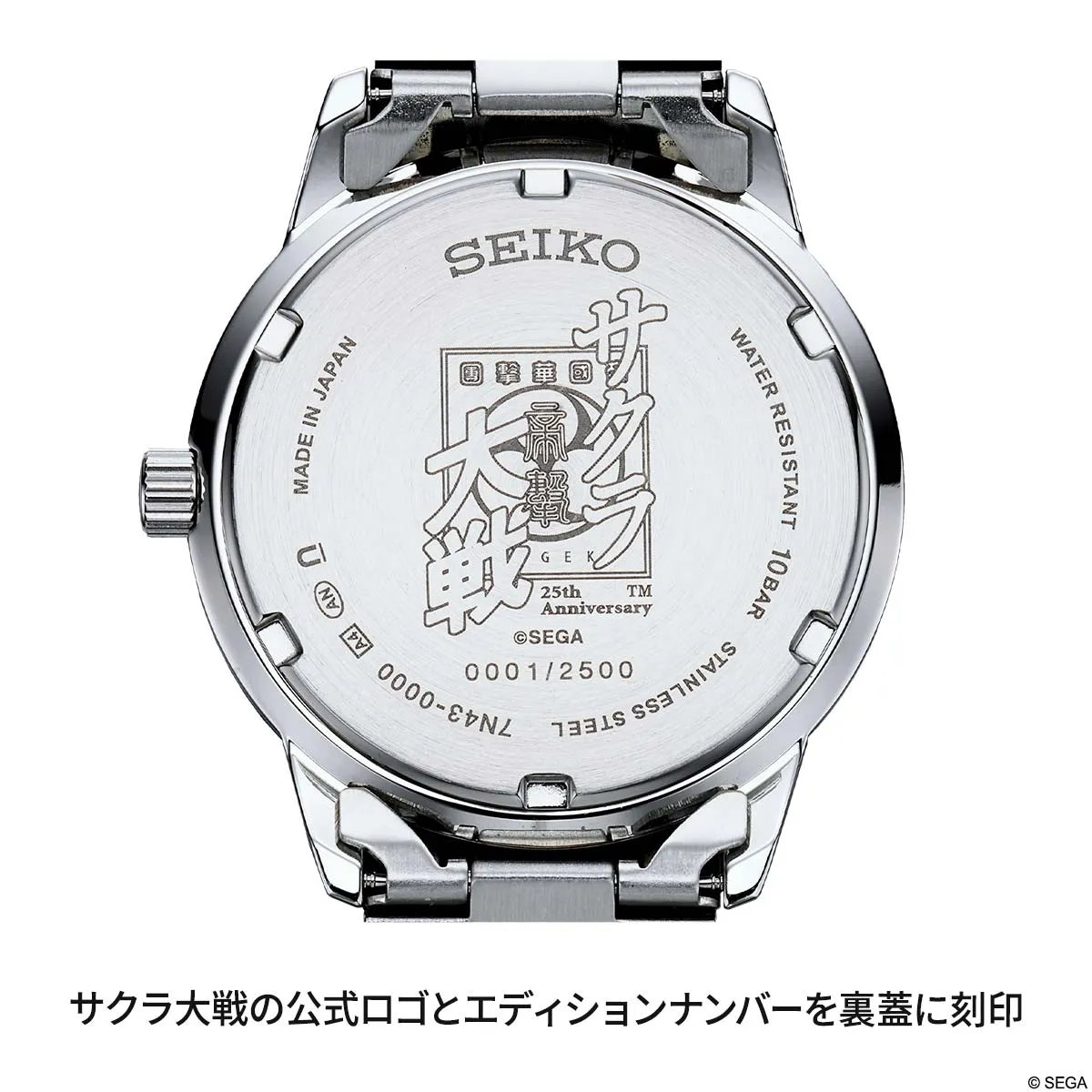 裏蓋にはサクラ大戦の公式ロゴと、限定2500点のエディションナンバーが刻印されます。