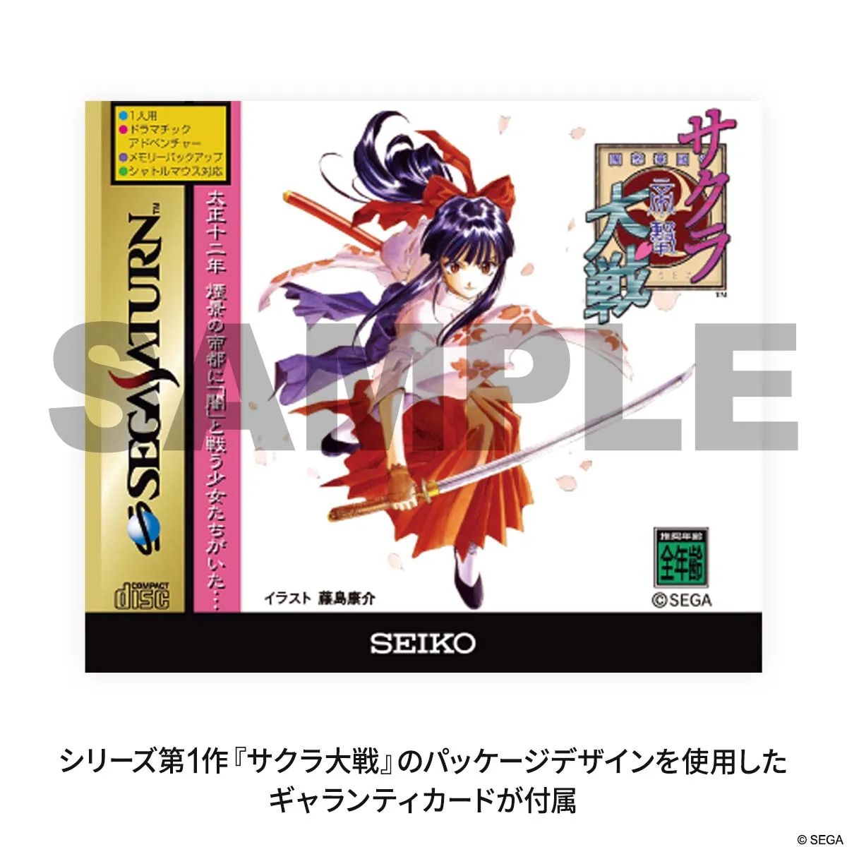 シリーズ第1作 セガサターン用ソフト『サクラ大戦』のパッケージデザインを使用したギャランティカードが付属します。