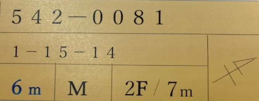 例 〒542-0081 大阪市中央区南船場 1丁目15番14号
