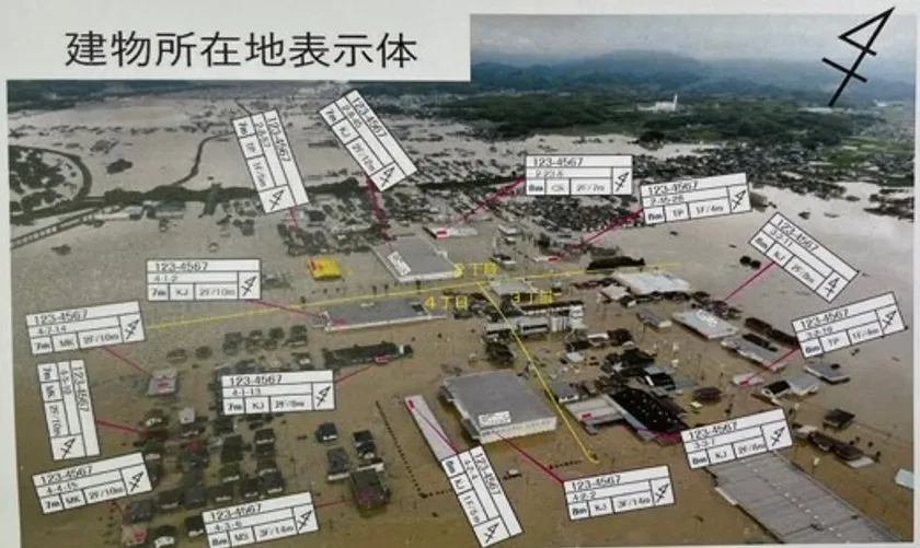 この「建物所在地表示体」により、建物の住居者に関するデータを登録することで、住居者の状況や安否確認をおこなうことも可能であり、さらなる人命救助に活用できものです。