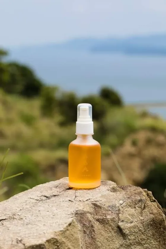 イスラエル産ホホバ油を含む8つの植物をくくり、奈良吉野天川村で活動する調香師SOMA 桑田 雅人氏による「太古の女性性」をイメージして生み出された香りをブレンド。月の満ち欠けに合わせ新月で調香し、水晶ろ過によるマイルドな仕上がりの究極のオイルは淡路島や聖地となる地で月光浴をしたのちにお届け。