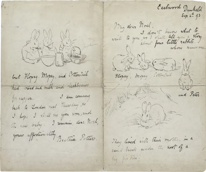 ・ピーターラビット(TM)以前に描かれた本邦初公開のうさぎのスケッチやイラストレーション、私家版や草稿本、原画、関連アイテムなど約170点を紹介。