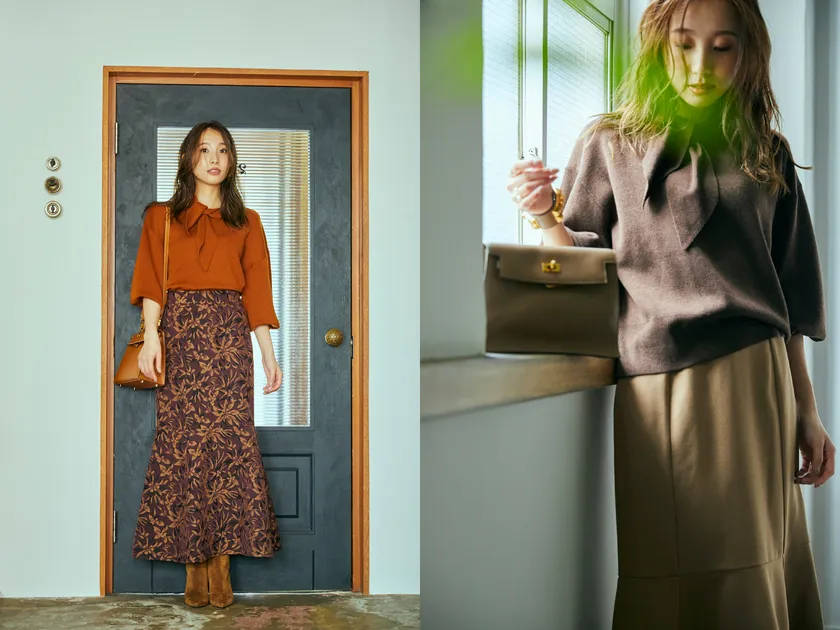着るだけで品よく女性らしさを引き出せる ボウタイニットとスカートの2アイテムを展開
