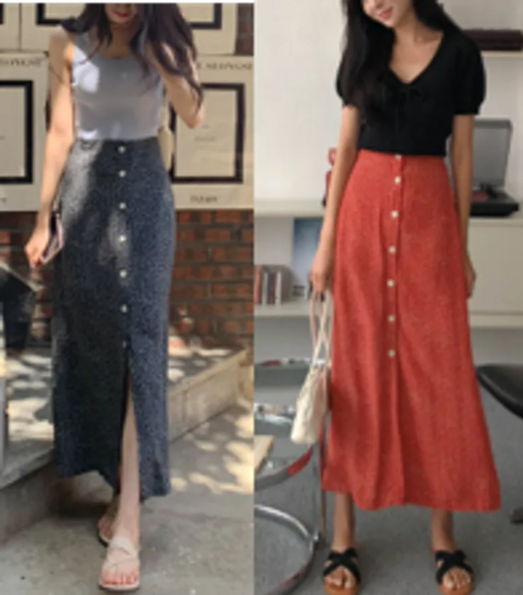 甘くなり過ぎない小花プリントにフロントのボタンディテールがアクセントのマキシ丈スカート。やわらかくシルキータッチのレーヨン素材がなめらかで着心地が良く、ゆるやかなAラインが歩くたびに軽やかな動きを与えて女性らしさをアップ。細身のロングスカートは、すらりとした美シルエットを演出してくれる頼もしいアイテムです。これからの季節にも合わせやすい落ち着いたブラックと優しいトーンのレッドで、どちらも揃えたくなるようなカラー展開。トップスを選ばず様々なスタイリングを楽しめるエレガントな1枚です。