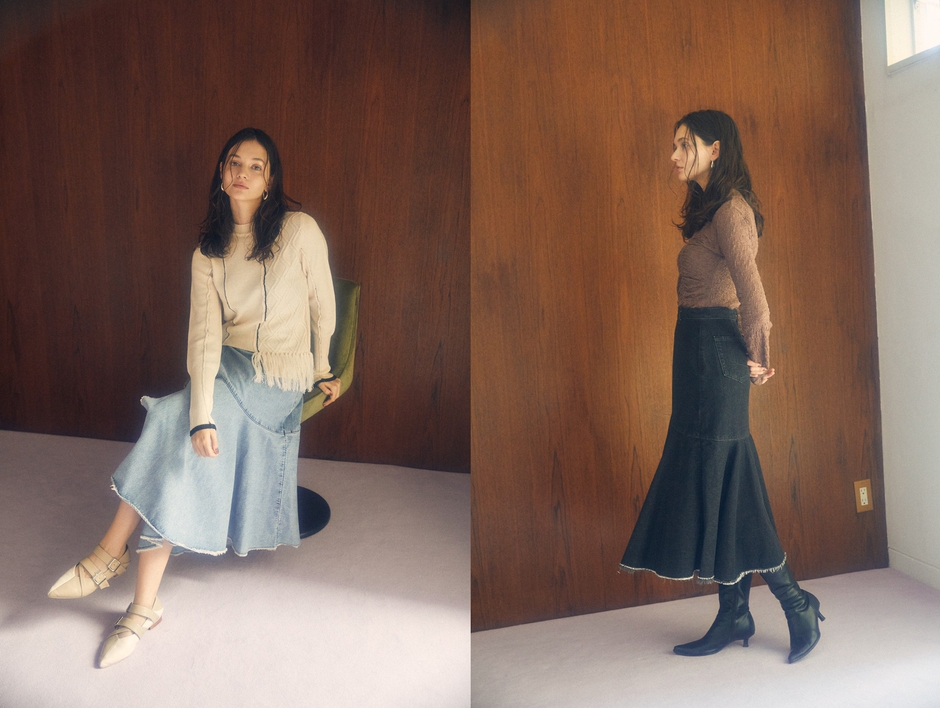 日本製デニムの可能性を広げるカジュアル感とユニークさがほどよくミックスされたドレープ感のあるデニムスカートがアパレルブランドPriveveから9月30日発売
