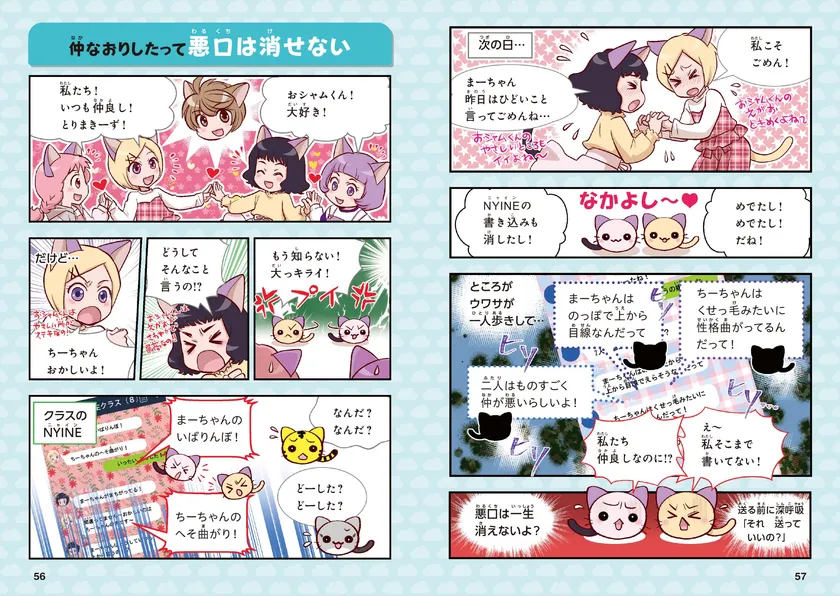 シチュエーションがイメージできるよう、ふんだんにマンガを用い、子どもがひとりで楽しみながら内容が理解できるようになっています。実際にあった出来事を題材に描いているので、身の回りで見たり、体験したりしていることに近く、自然と「自分のこと」として捉えることができるでしょう。