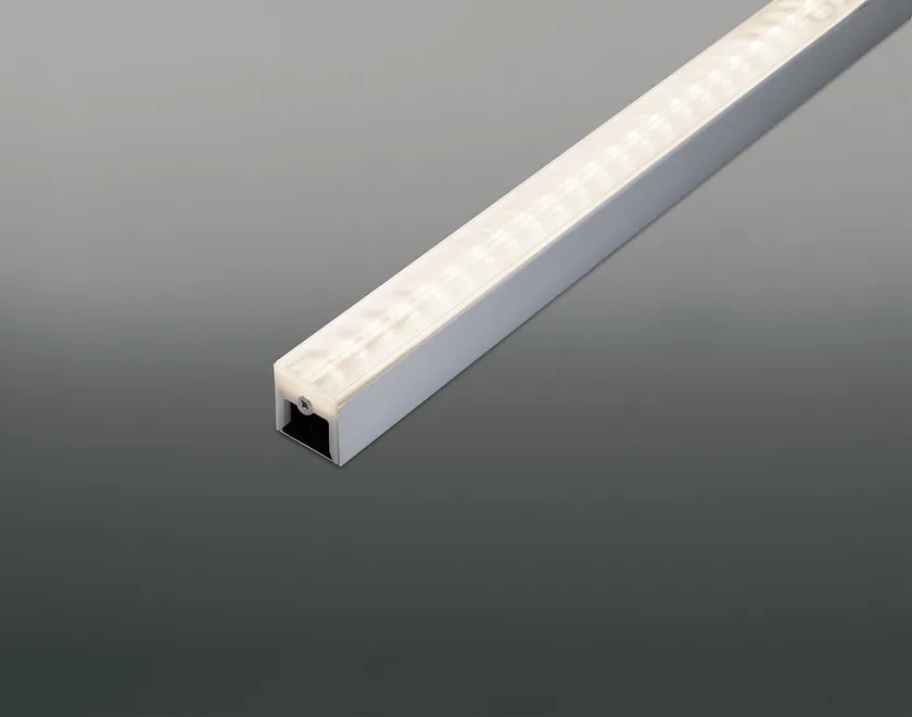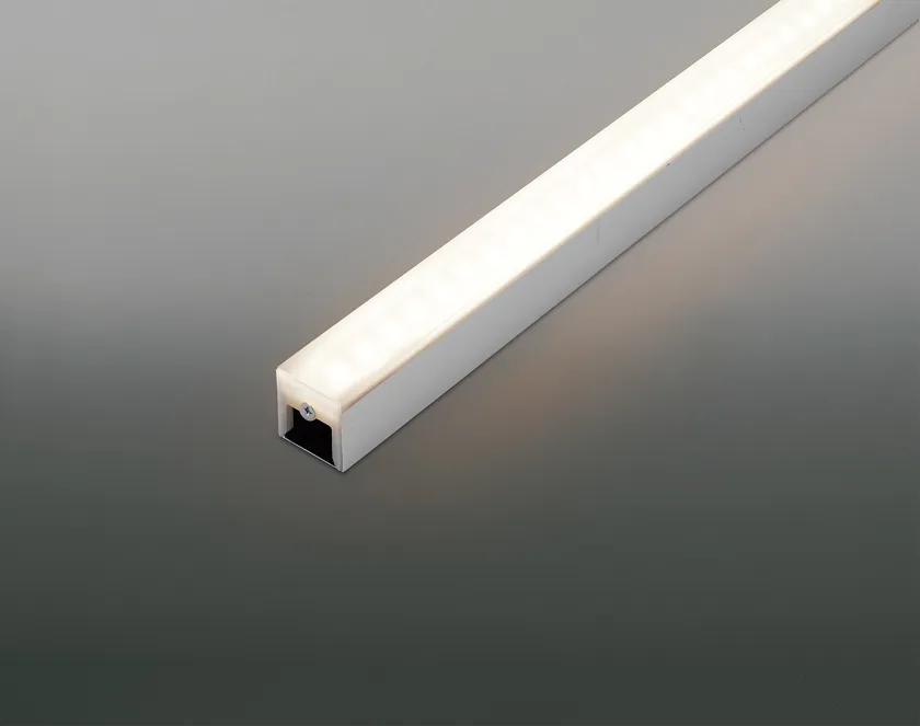 電源一体型間接照明の中で、幅広い品揃えでご好評を頂いております「ライトバー間接照明」をリニューアルし、建築に合わせて300mm単位で5種類のサイズ(1500、1200、900、600、300mm)をご用意、目的に合わせた使い方ができるよう3種類の配光バリエーション(散光、中角、取り付けオプションによる斜光)を取り揃えるなど、新たに90機種をラインアップしました。また、豊富な色温度(2700K、3000K、3500K、4000K、5000K)とともに、調光調色タイプ、調光タイプ、ON/OFFタイプと機能性も考慮しました。ミドルパワータイプは高28mm、幅25mmと一層コンパクトになり、施工寸法の狭小化を実現します。
