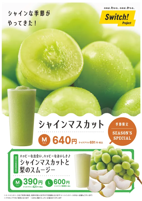 『シャインマスカット』『シャインマスカットと梨のスムージー』