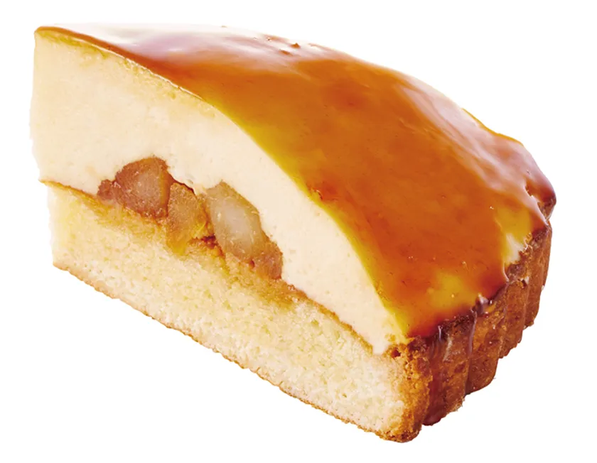 洋梨を贅沢に楽しめるカスタードケーキ。しっとりしたタルト生地の上に、メレンゲを混ぜた軽い食感のカスタードクリーム、ほろ苦いカラメルソースで仕上げました。中にはカラメルソースをたっぷりと絡めた洋梨がゴロっと入っています。口の中ですっと消えていくカスタードのくちどけと、洋梨の食感がたまらない一品。カラメルソースのほろ苦さと洋梨の甘さのバランスが絶妙でコーヒーとの相性も抜群です。ちょっぴり大人な味わいのカスタードケーキをご堪能あれ。