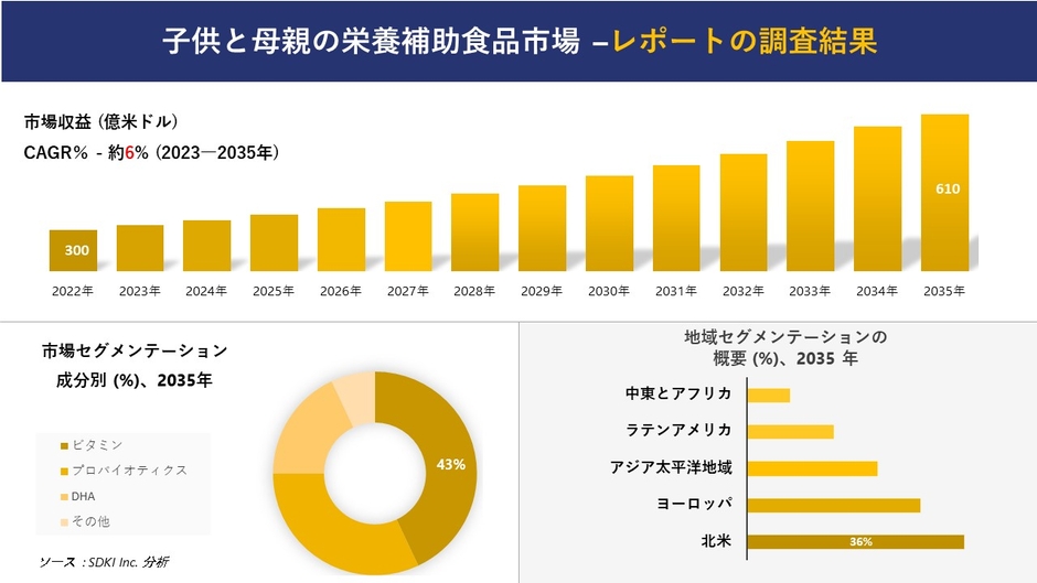 SDKI Inc.(2023年08月25日)は、2023年と2035年の予測期間を対象とした「子供と母親の栄養補助食品市場」に関する調査を実施しました。
