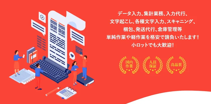データ入力やスキャニング、梱包発送、軽作業などの 総合アウトソーシングサービス開始! 小ロットでも大歓迎!国内対応、高品質、低価格!