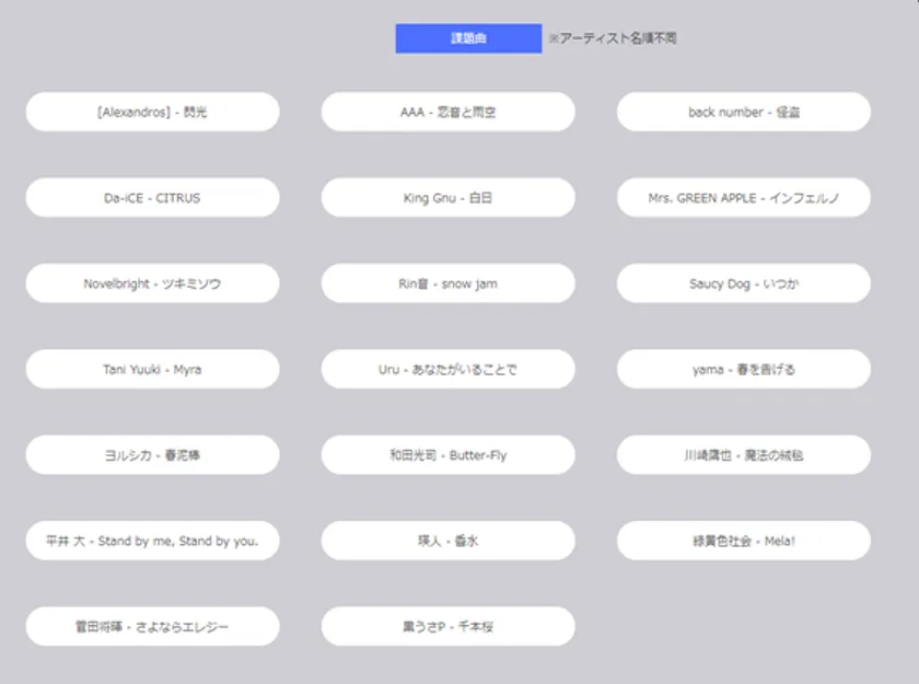 エントリーページから課題曲20曲の中から1曲を選択