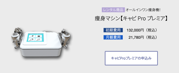 痩身機「キャビProプレミア」を使用してセルフエステサロンの開業やセルフメニューの追加のご利用方法も人気となっております。実際に、どのマシンがよいのかわからないや、1度使ってみたいなどのご要望はご遠慮無くお申し付けください。