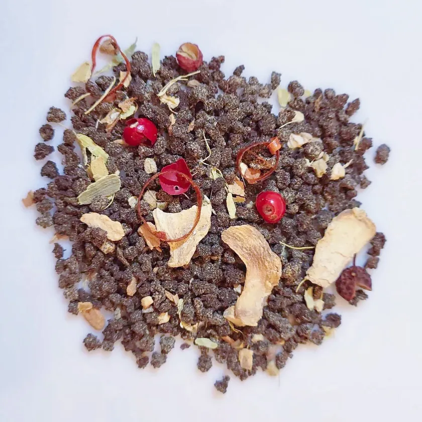 地獄チャイはシナモンやジンジャーなどの定番スパイス5種に加え、辛さに特化した唐辛子・ブラックペッパー・山椒の3種をブレンドした、アッサムベースのチャイ専用ブレンドです。
