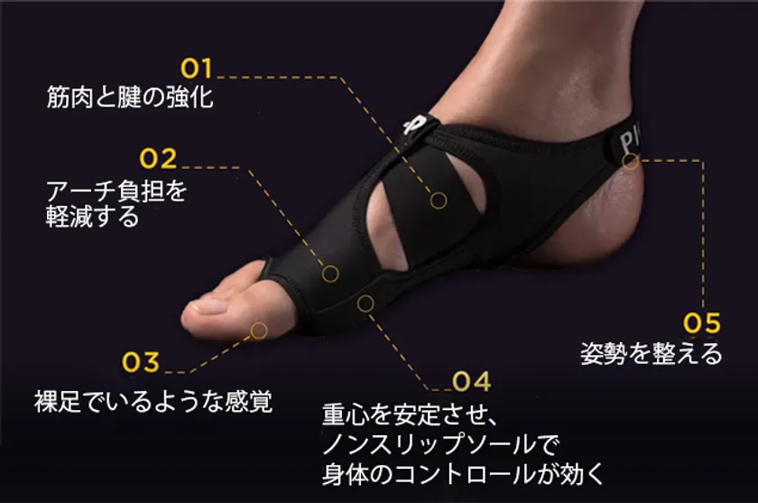 2. 足裏アーチをしっかりサポート!母指球・土踏まずから体幹・重心バランスを整えて凛とした美しい姿勢に。
